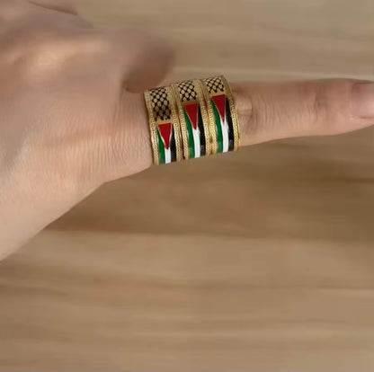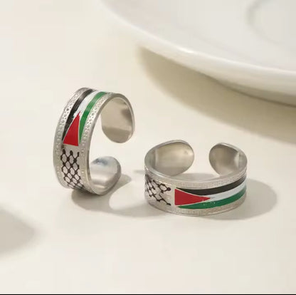 Wear this stylish Palestine ring to express your solidarity with the Palestinian cause and add an elegant and symbolic piece to your jewelry collection.