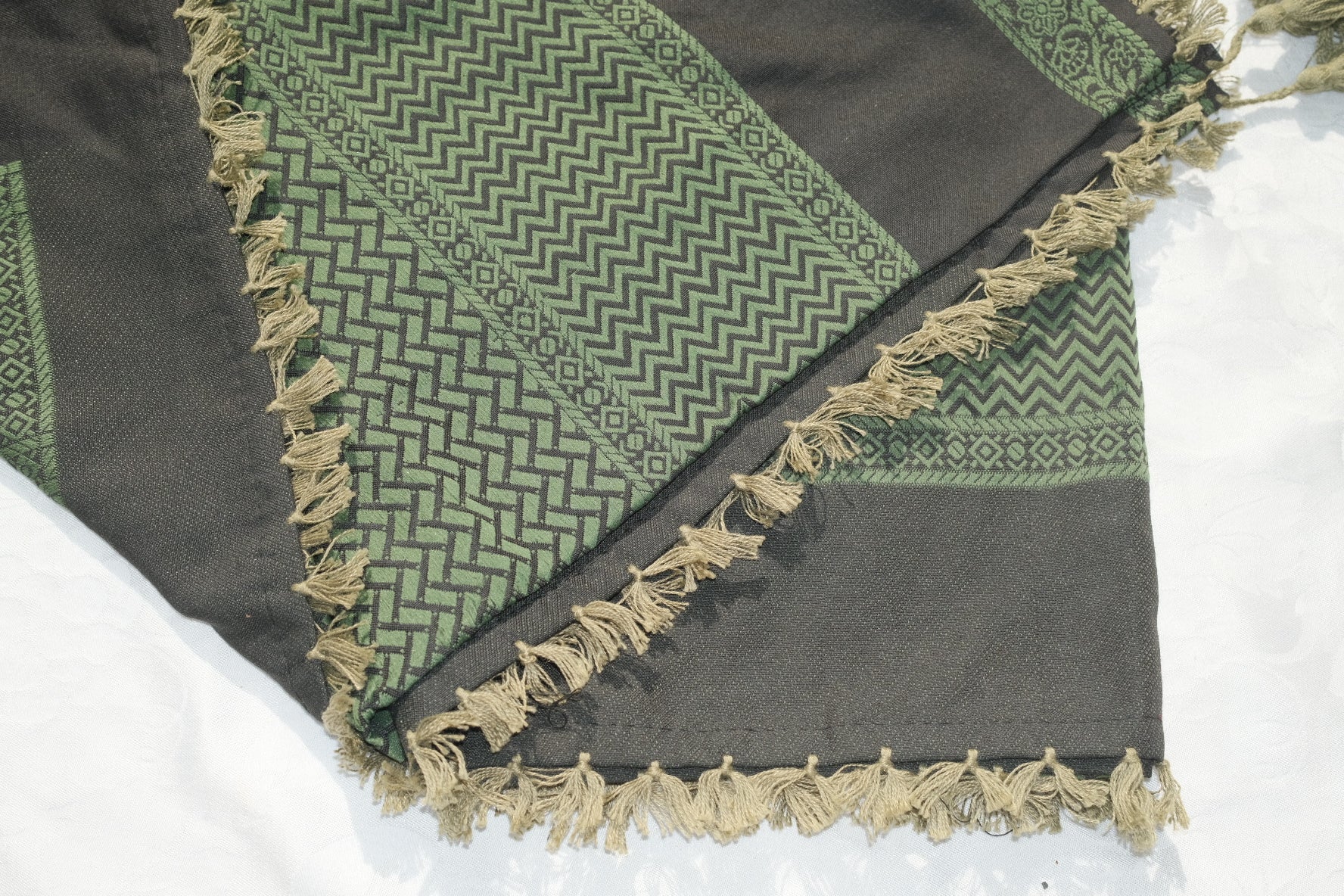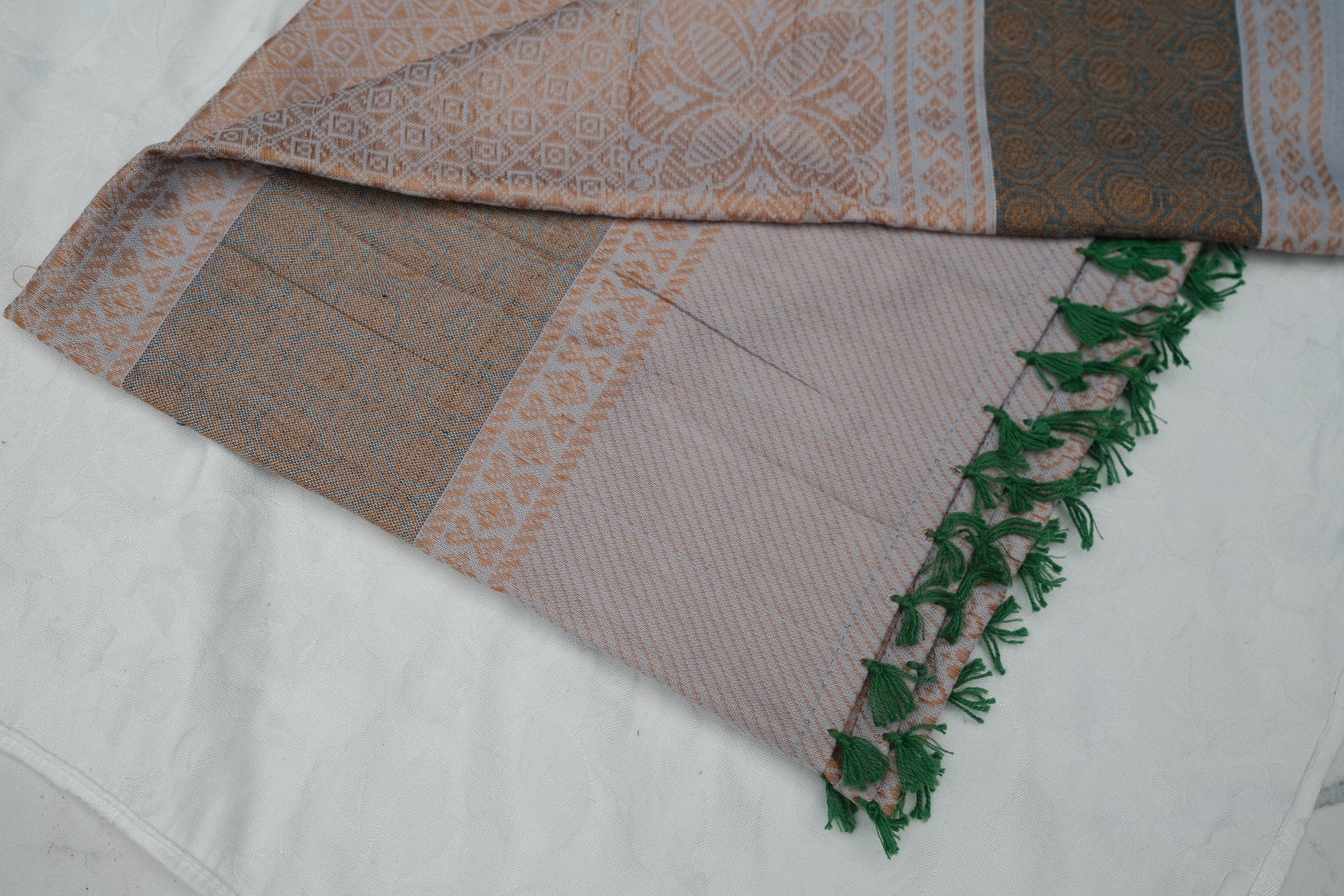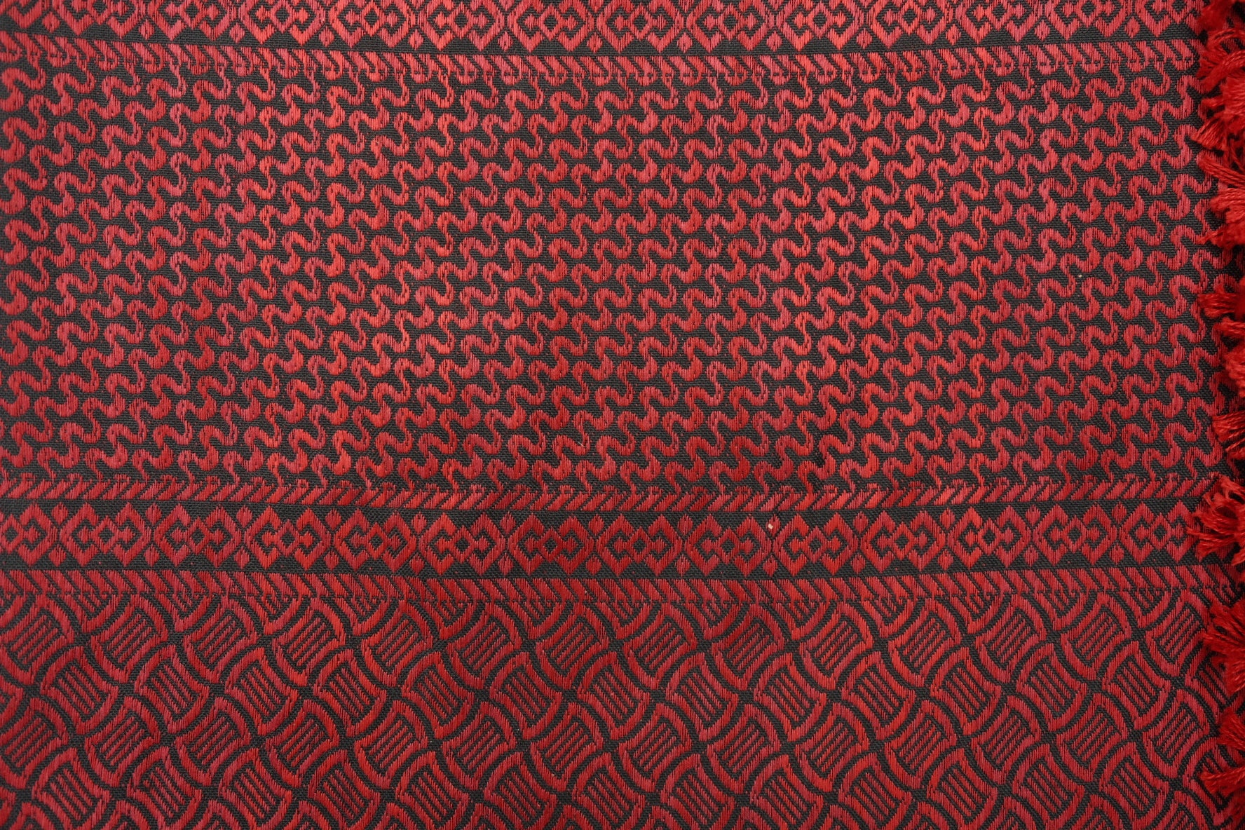 Patrón tradicional tejido con flecos