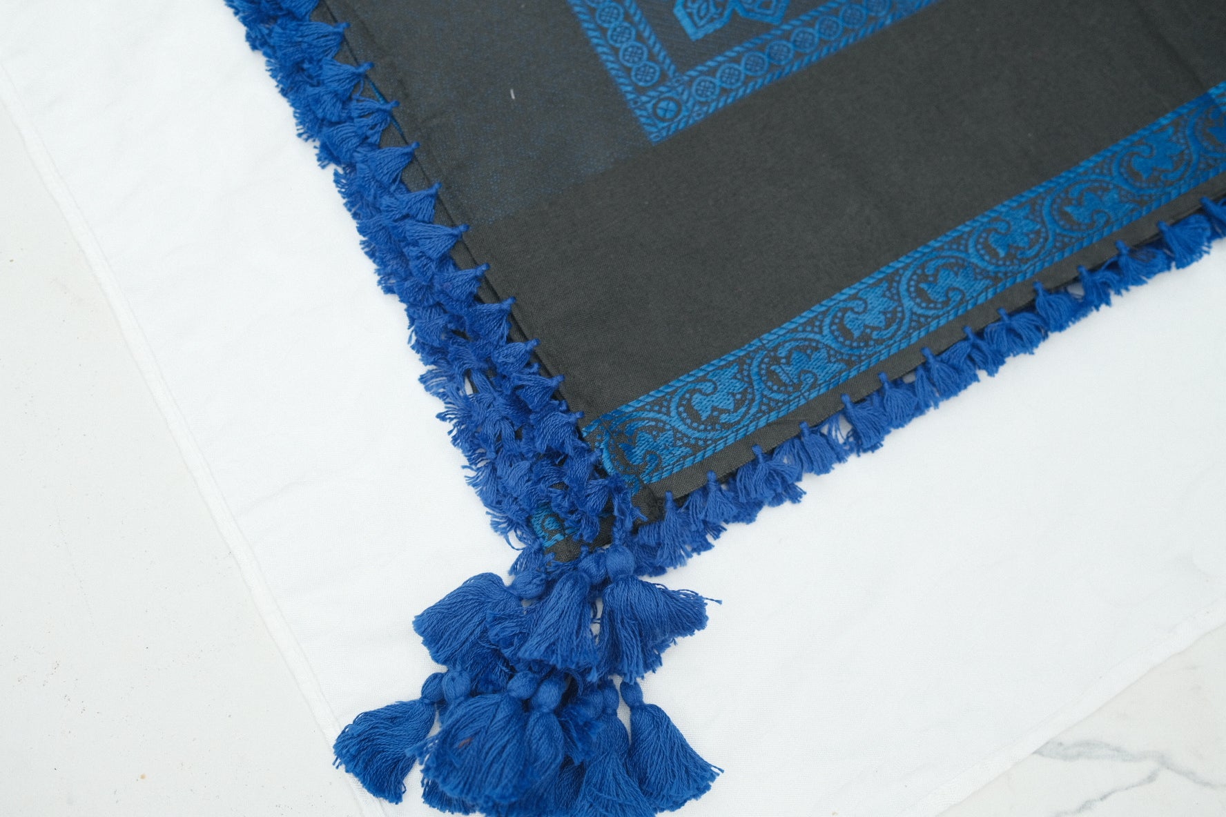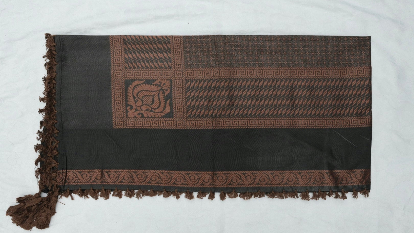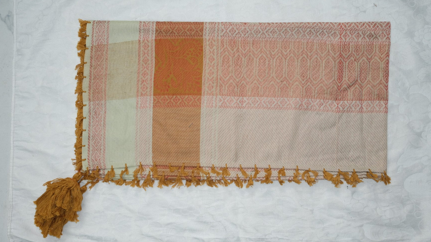 Patrón tradicional tejido con flecos