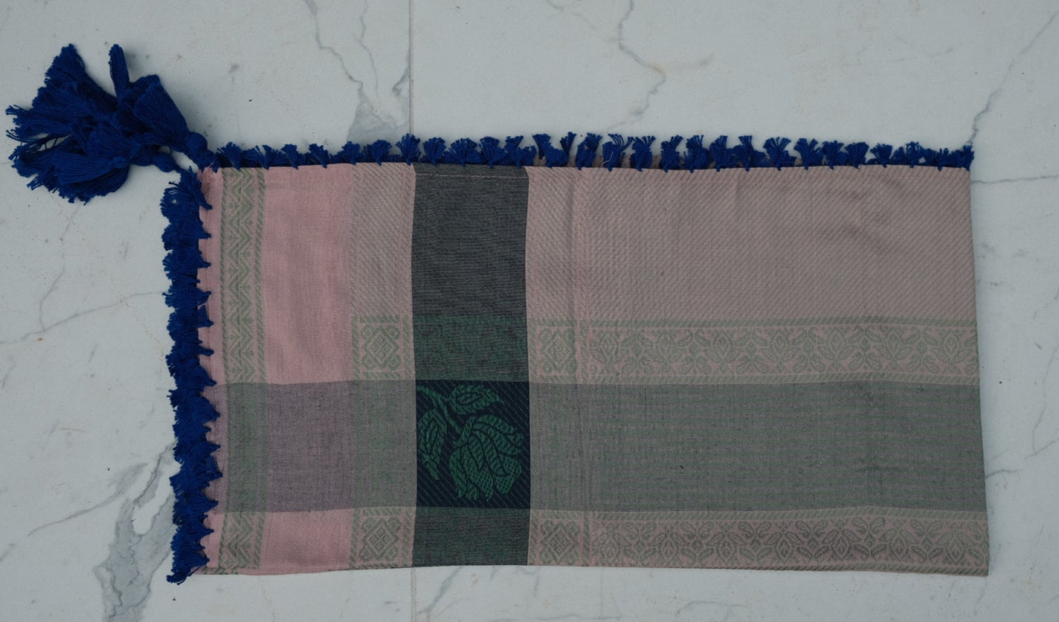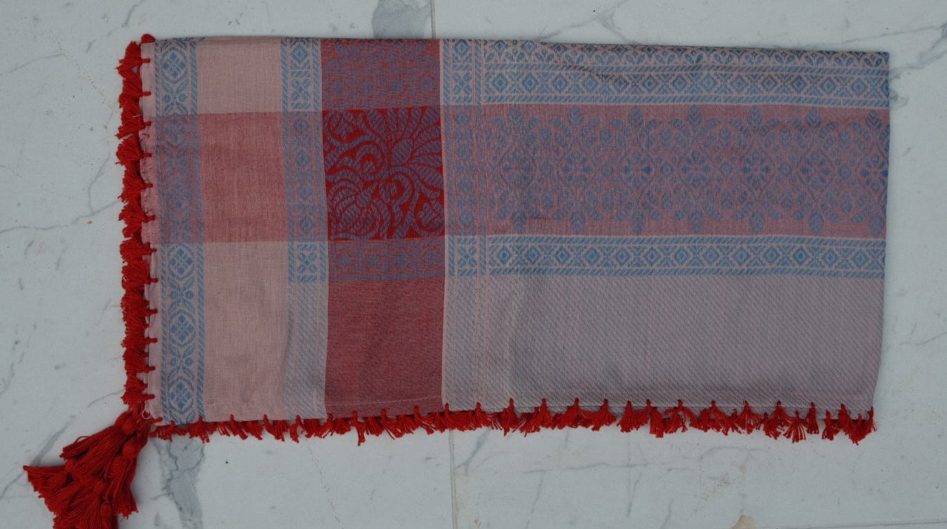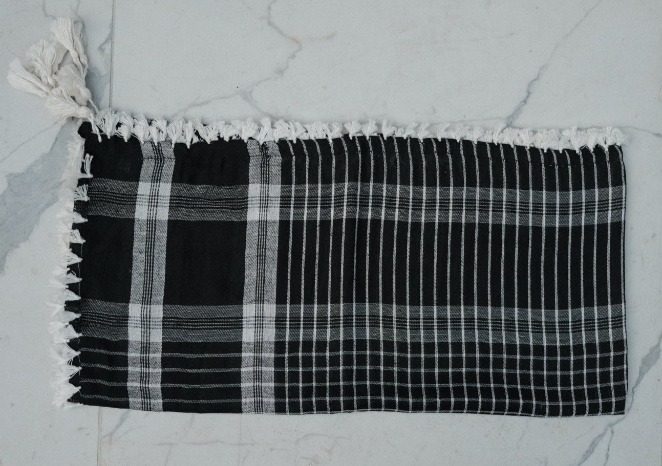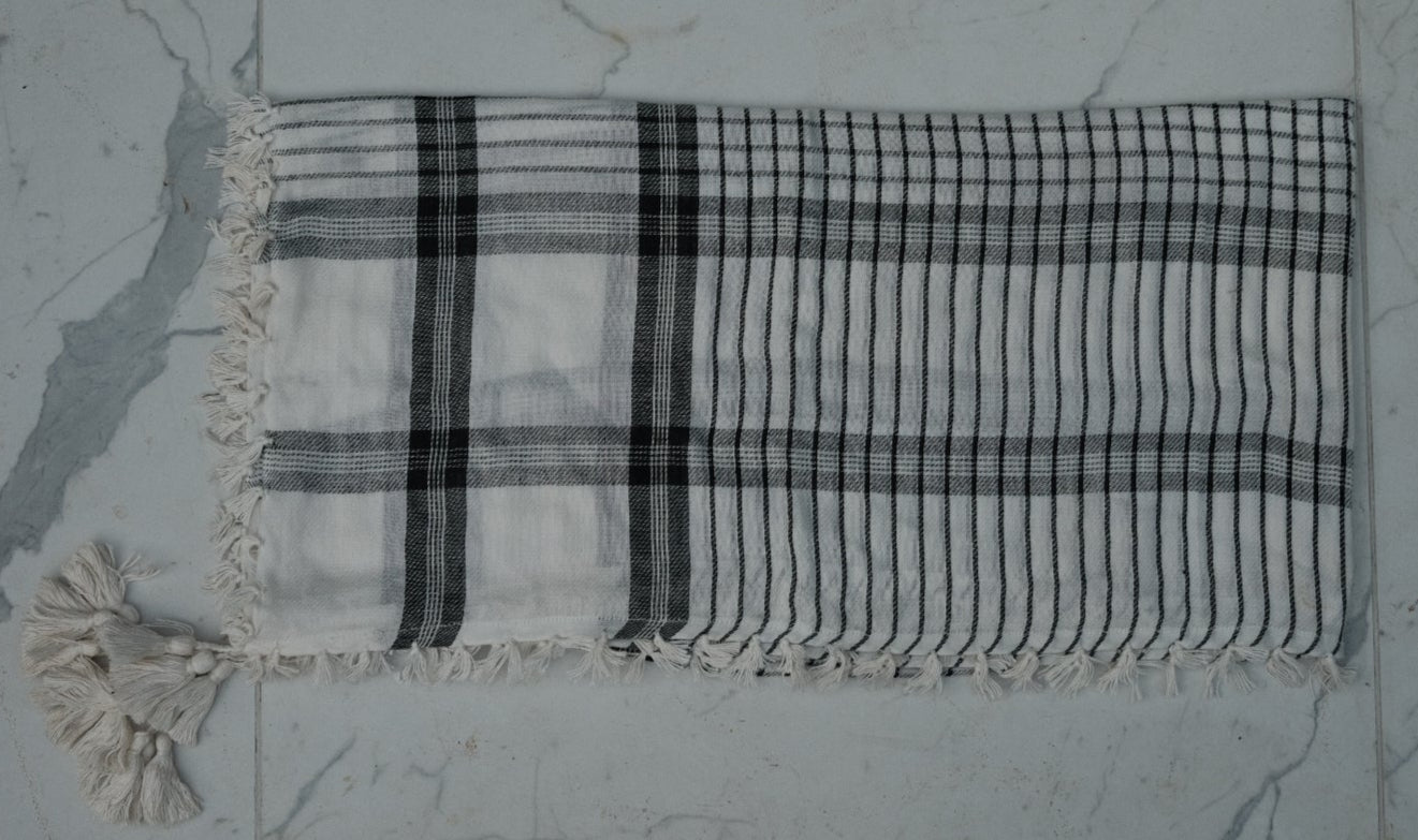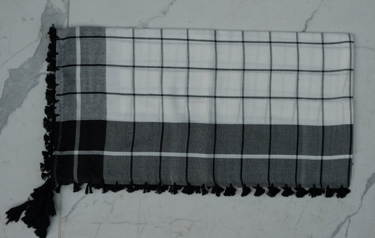 Esta variante está hecha de 100% algodón premium, lo que hace que la tela sea suave al tacto, transpirable y duradera. Los patrones tejidos y los flecos son característicos de la artesanía con la que estos pañuelos se han fabricado durante generaciones.