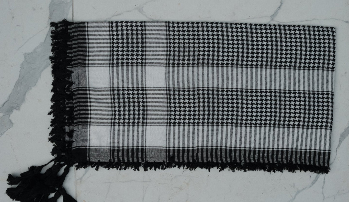 El Shemagh Keffiyeh es un pañuelo tradicional que se usa en gran parte del Medio Oriente. Originalmente servía como protección contra el sol, la arena y el frío, pero con el paso de los siglos, el keffiyeh también adquirió un significado cultural y simbólico.