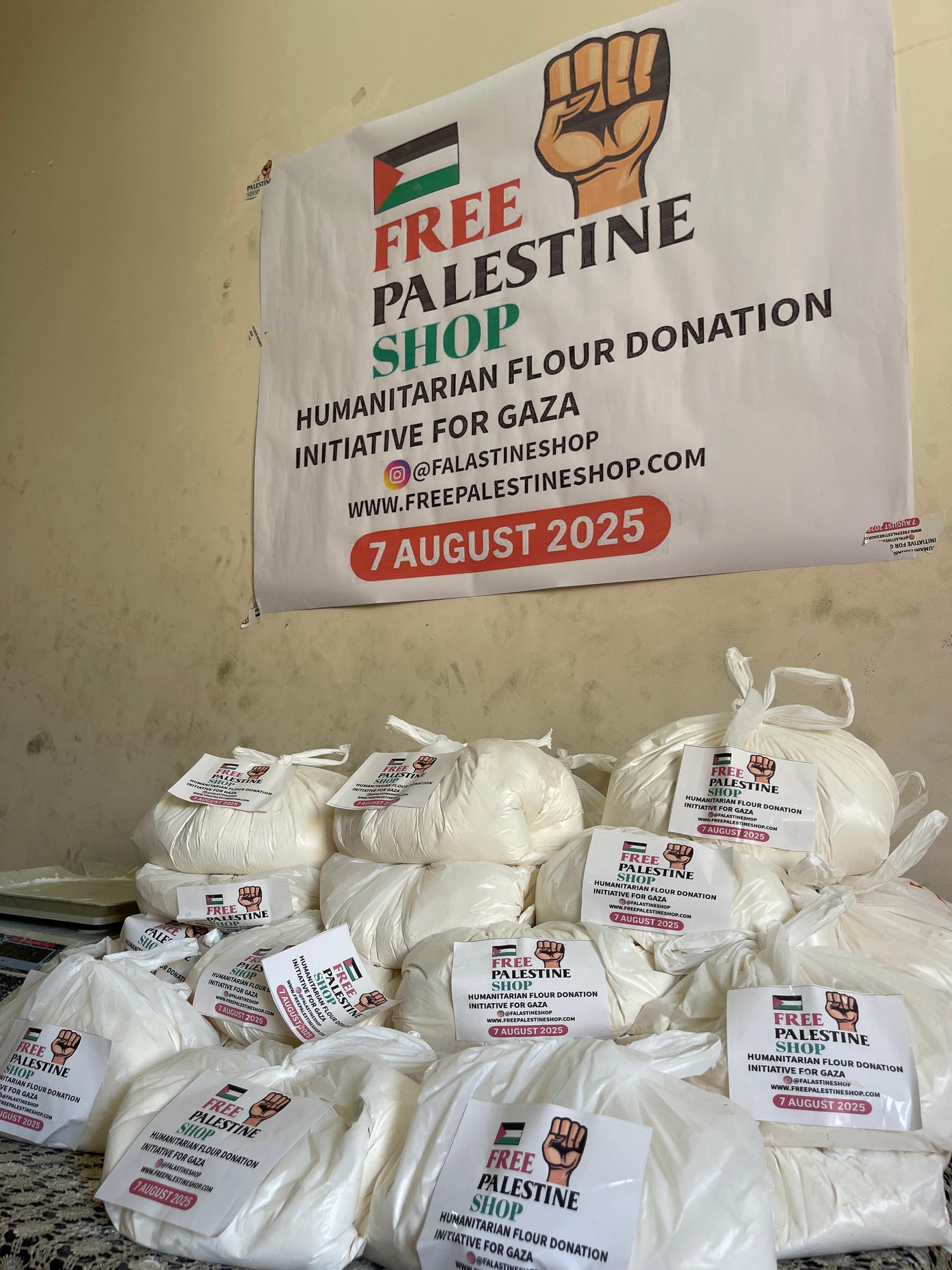 Free Palestine Shop a contribué avec fierté en faisant don, entre autres, de keffiyehs, de drapeaux palestiniens, d'autocollants et d'accessoires. Les keffiyehs étaient en rupture de stock dans les deux premières heures et les drapeaux et autocollants ont également rencontré un grand succès.