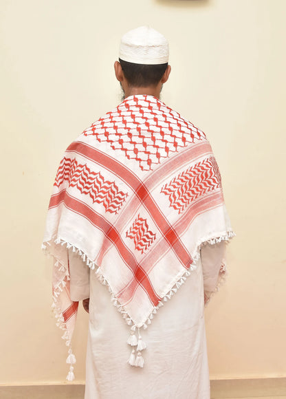 Kufiya/Keffiyeh Rouge 100% Coton + Drapeau de Palestine Offre Combo