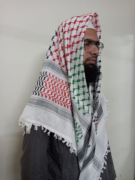 Kufiya/Keffiyeh Fully Wit 100% Katoen