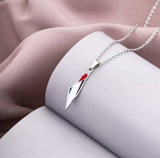 Sleutelhanger Palestina Landkaart in Palestina Vlag Kleuren Zilver/Goud