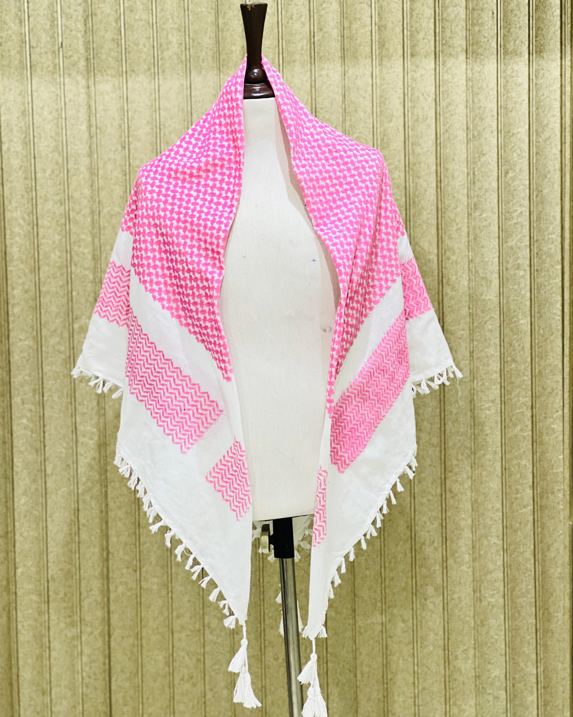 De Palestijnse Keffiyeh, ook bekend als Kufiya of Shemagh, is een iconische sjaal met een rijke geschiedenis. Dit ontwerp wordt al generaties lang gedragen en staat wereldwijd symbool voor cultuur, identiteit en solidariteit.