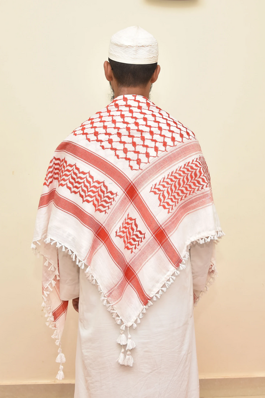 Kufiya/Keffiyeh Rood/Wit 100% Premium Katoen Witte Details