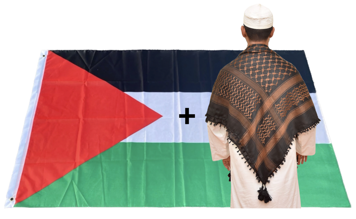 Kufiya/Keffiyeh Zwart/Bruin 100% Katoen + Palestina Vlag Combi Deal