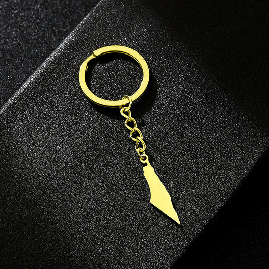Chaveiro Mapa da Palestina nas Cores da Bandeira da Palestina Prata/Dourado